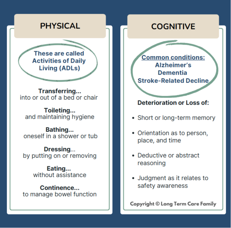 It refers to the need for assistance due to a Physical or Cognitive Impairment...